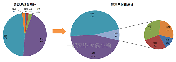 有時候如果品項太多、數據過小在同一個圓形圖上時,